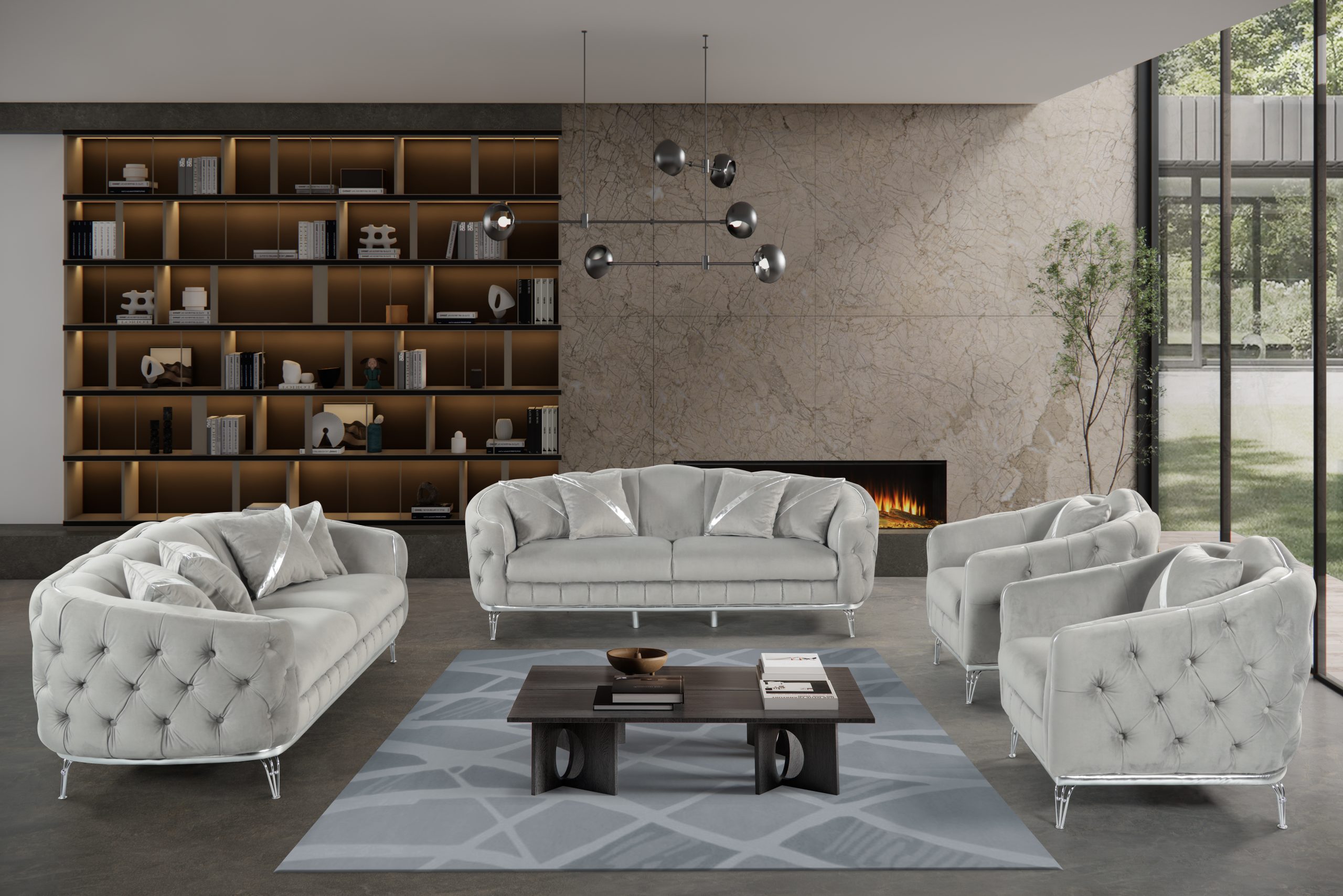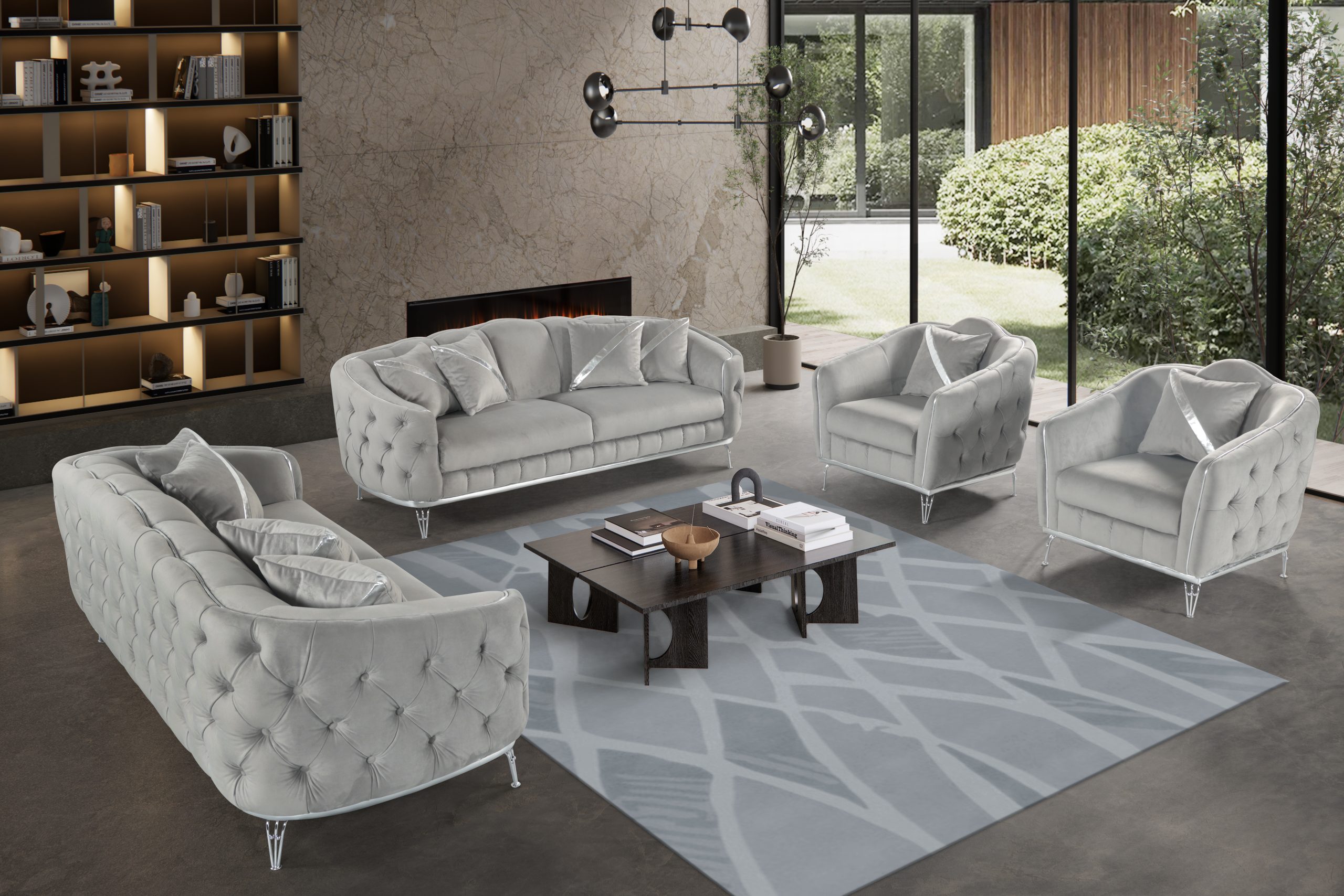 Mina soffgrupp i grå färg med silver detaljer 3+3+1+1