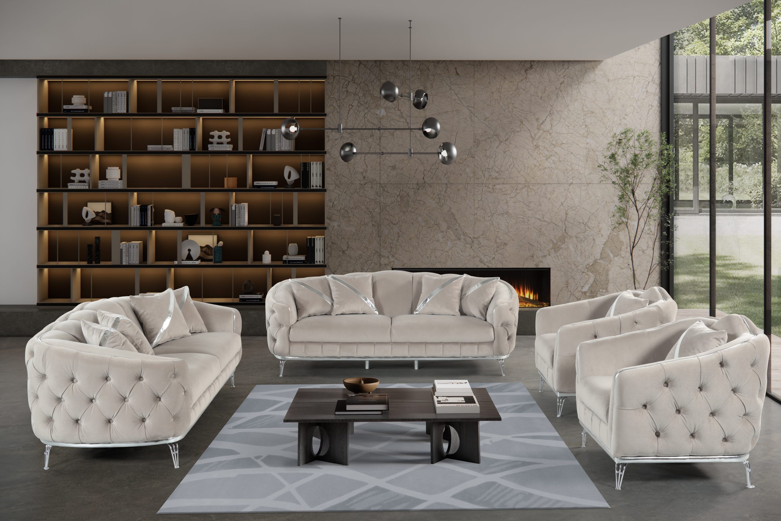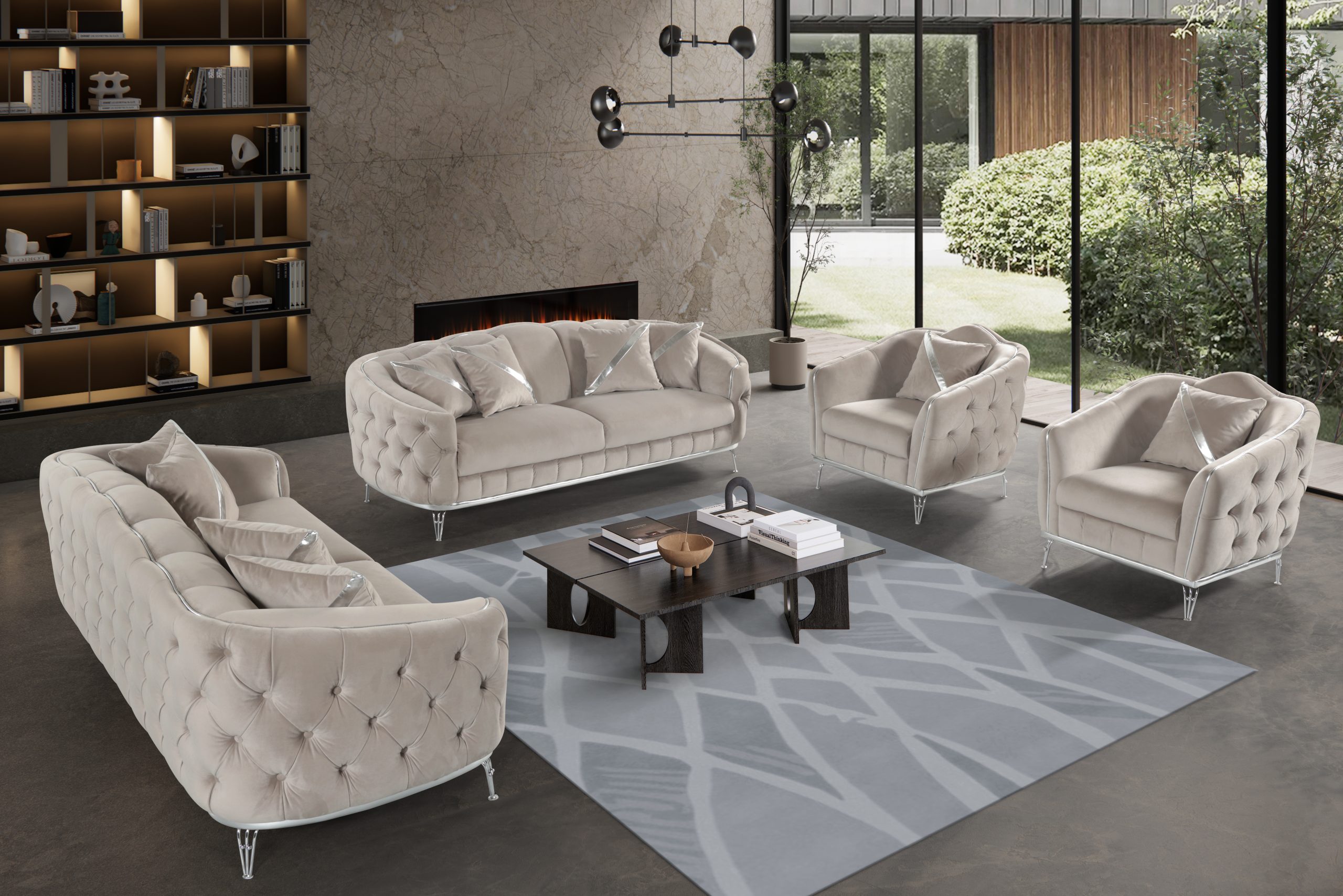 Mina soffgrupp gråbeige med silver detaljer 3+3+1+1