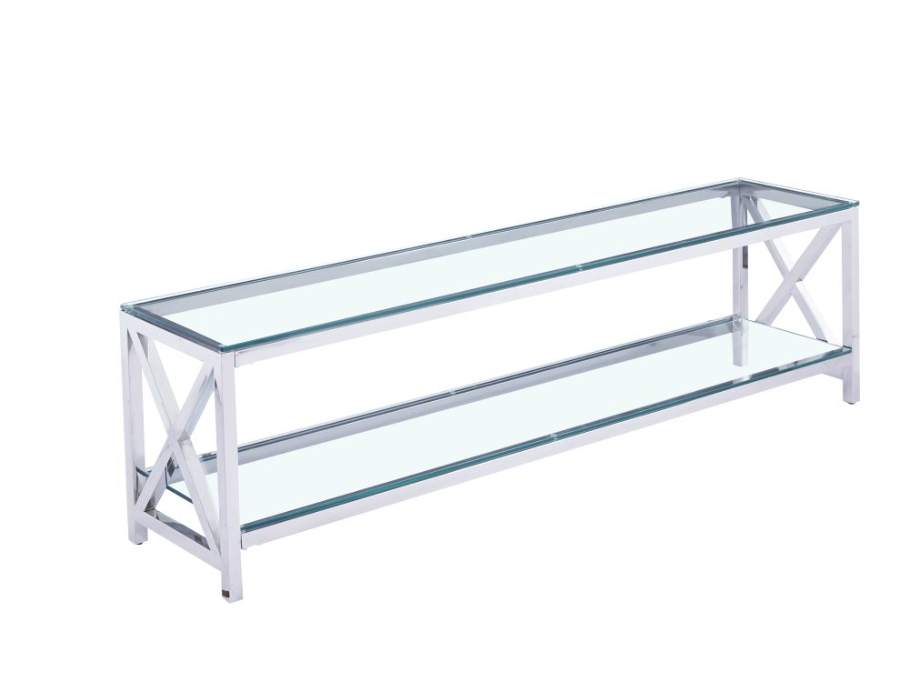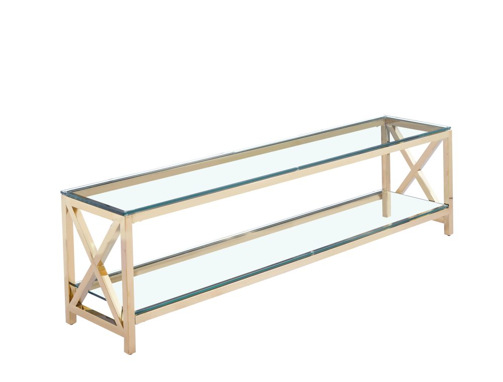 Simon Tv bänk i genomskinlig skiva med Stainless Steel ben i guld & silver färg